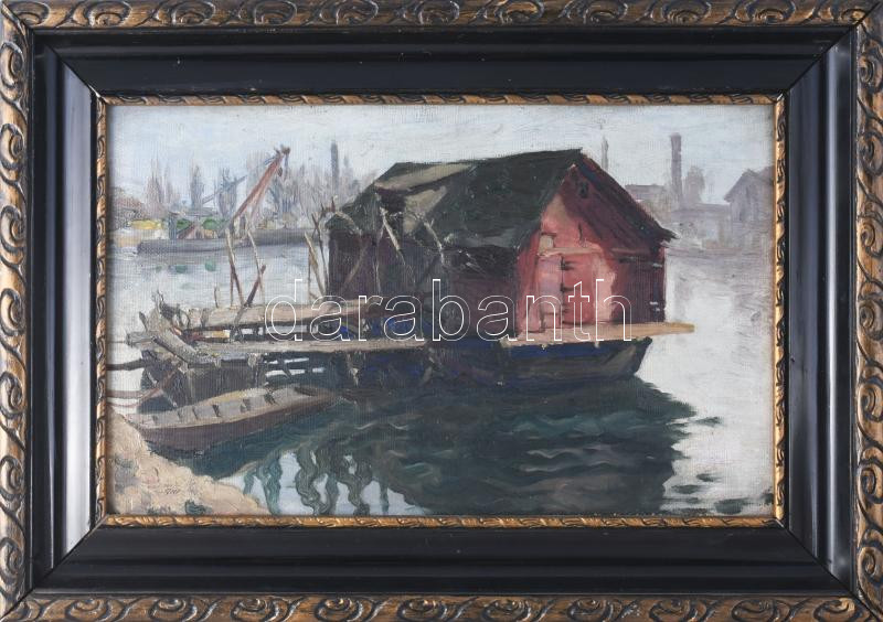 Azonosítatlan jelzéssel: Úszómalom 1910. Olaj, vászon, 25x40 cm Keretben.