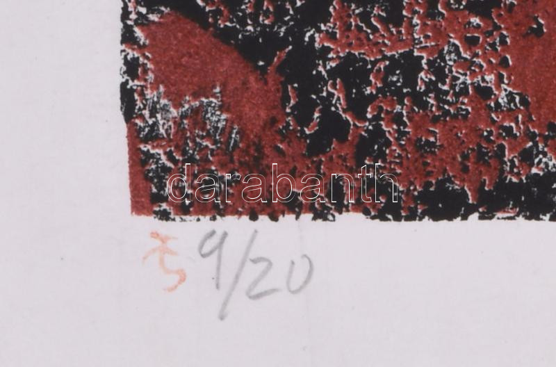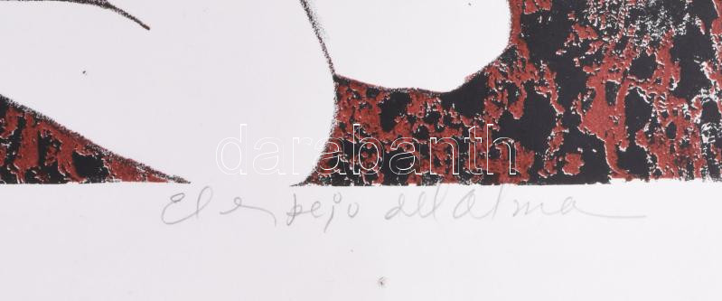Azonosítatlan spanyol művész: Szűrrealista grafika. Litográfia, papír, jelzett, sorszámozott 9/20.Tetején sérülésekkel 50x60 cm