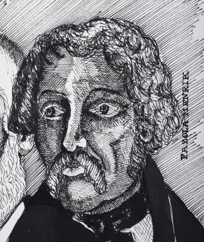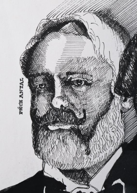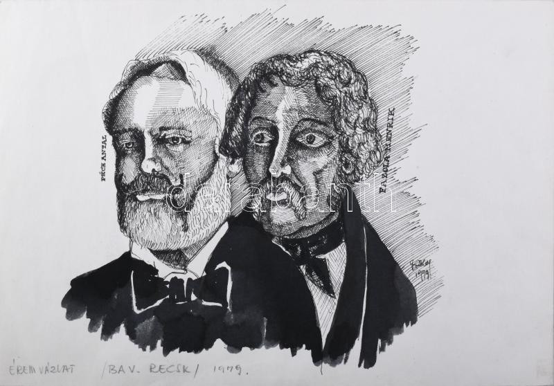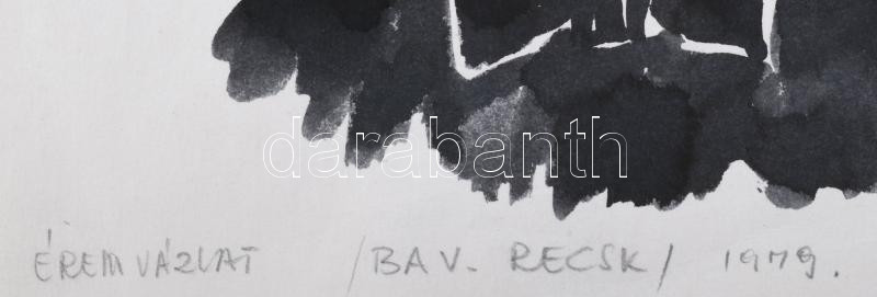 Boros Zsolt György (1944) Péch Antal - Pazola Henrik emlékérem terv. Tus, akvarell, Jelzett 20x30 cm