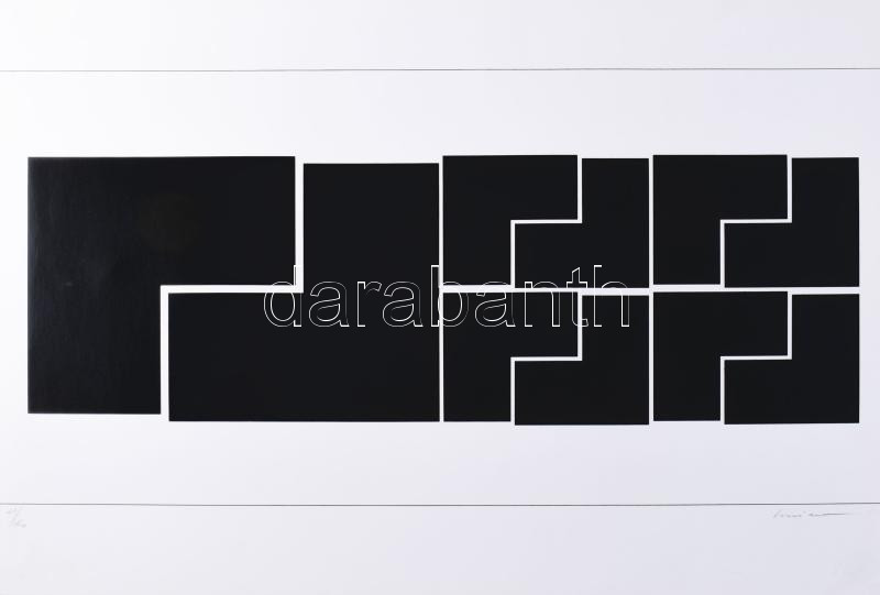 Nicola Carrino (1932-2018): Geometrikus kompozíció. Szitanyomat, papír, jelzett, számozott: 47/160. 30x59 cm