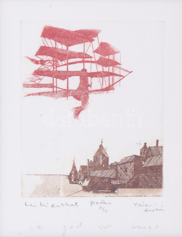 Váczi András (1967- ): Lilienthal. Rézkarc, papír. Próbanyomat 12x9 cm...