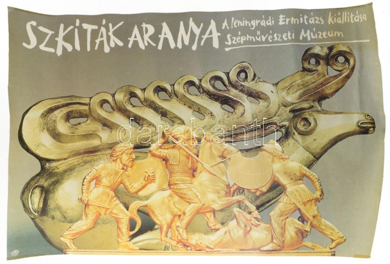Koppány Simon (1943- ): Szkíták aranya, 1985, kiállítási plakát, papír, jelzett a plakáton, feltekerve, 58x83 cm