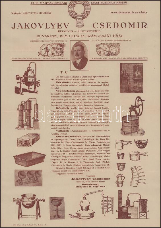 Jakovlyev Csedomir rézműves Dunakeszi Bem utca fejléces boríték, prospektusok, 3 db