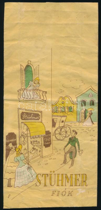 cca 1930 Stühmer édességes zacskó dekoratív rajzzal, jó állapotban, 20×9 cm