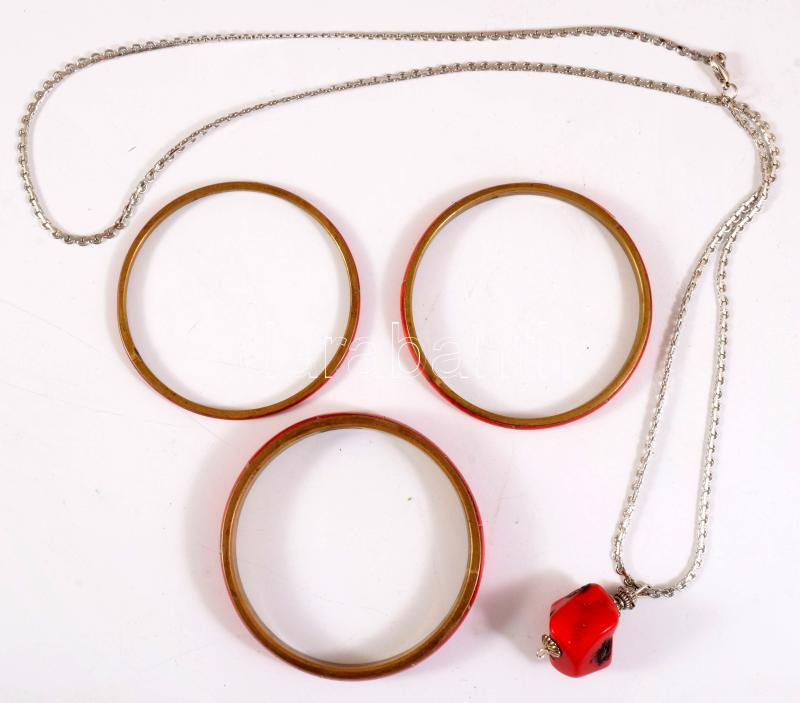 4 részes ékszer szett, vörös korall? berakással, díszítéssel.