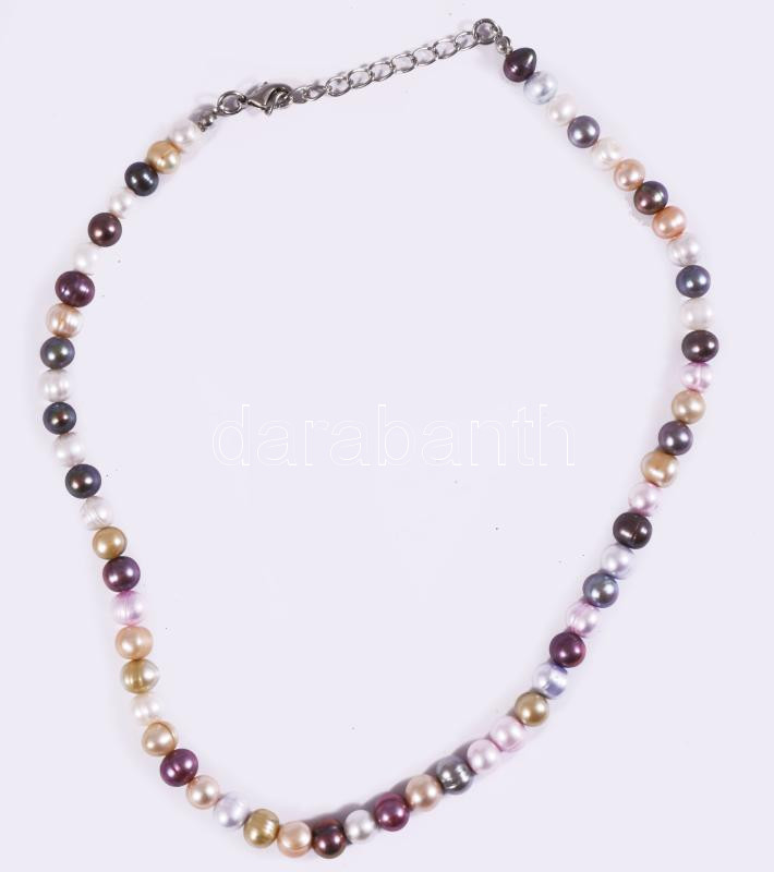 Cukorszínű tenyésztett gyöngy nyaklánc, h: 40 cm