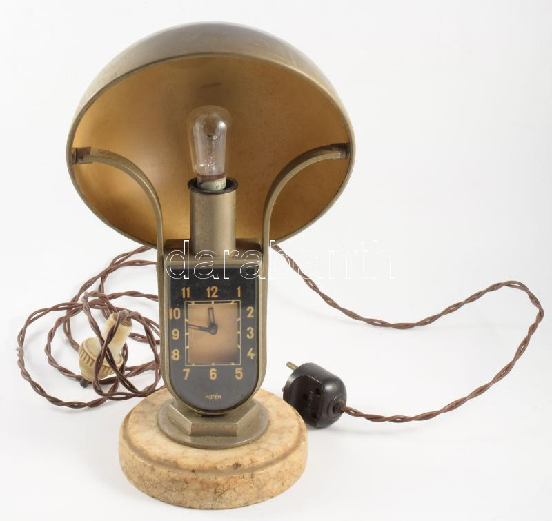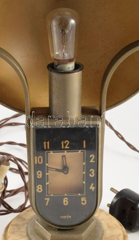 MOFÉM art deco lámpa óra. Óra rész nem működik. 28 cm