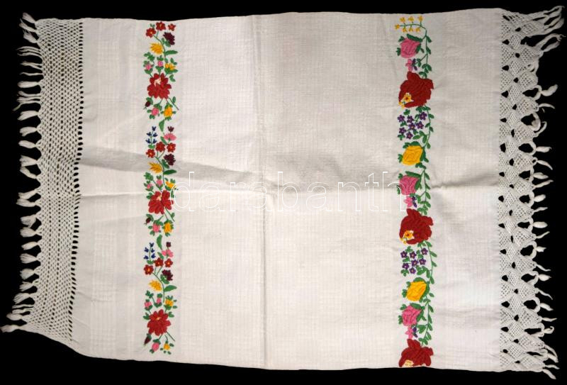 Törölköző, 3 darab, Erdély, 20. sz. eleje, hímzett vászon, h: 80 cm alatt