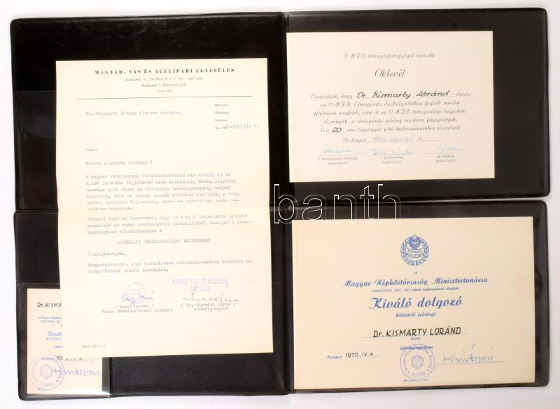 ca 1970 Kismarty-Lechner Lóránd (1883-1963) magyar építész 3 db kitüntetés adomáynozó okirata: kiváló dolgozó Munka érdemrend, stb.