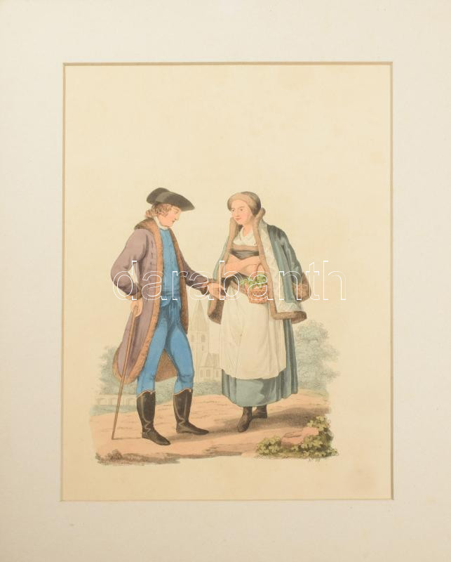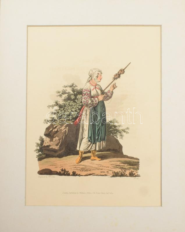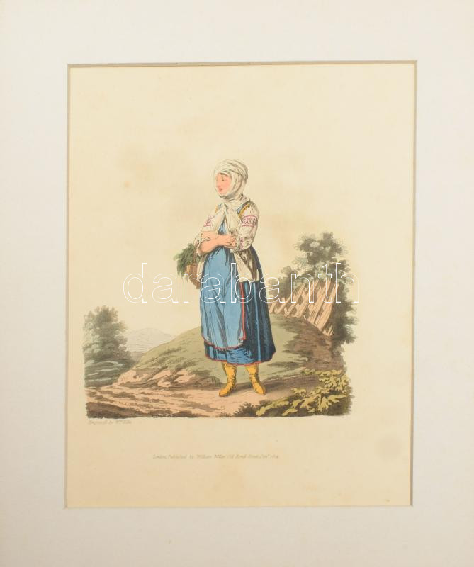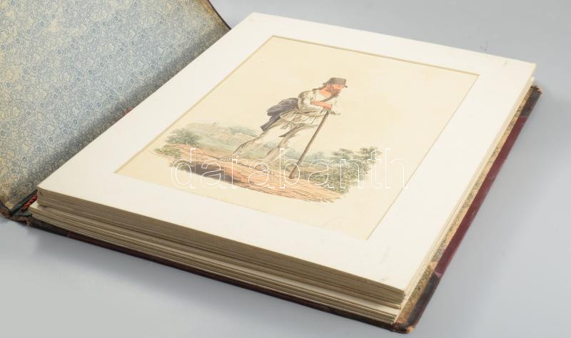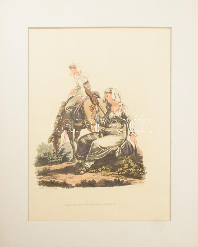 1804 William Ellis (1747-1810): 10 db színezett fametszet (vidéki élet, különböző viseletek), paszpartuban, vegyes állapotban, látható méret: 27x20 cm körül