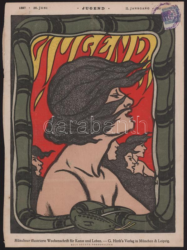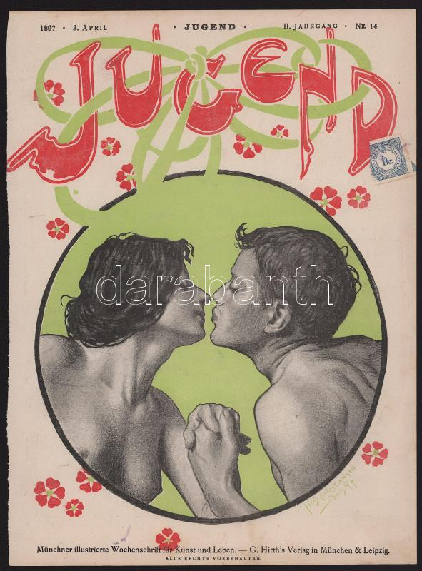 1897 A Jugend c. lap 3 db szecessziós grafikát bemutató címlapja. Litográfia, papír. 24x29 cm Kettő hírlapbélyeggel