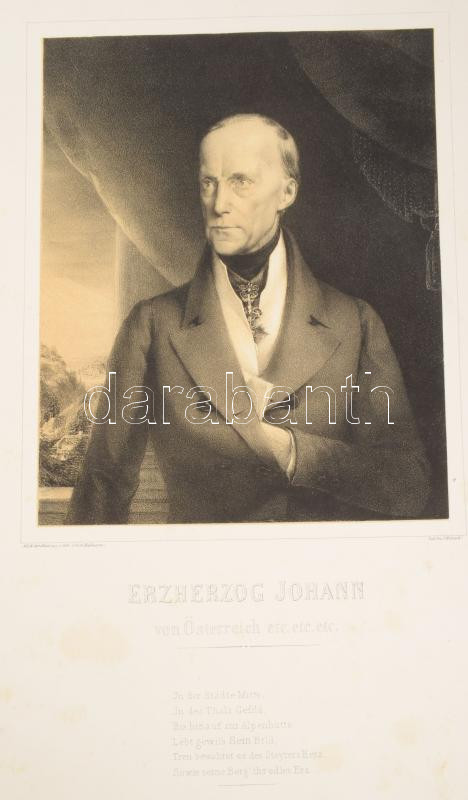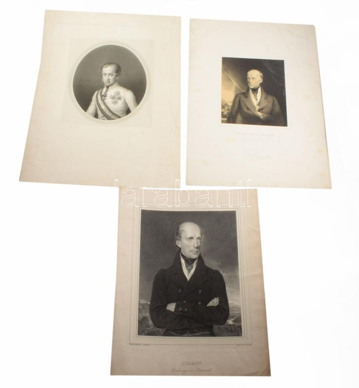 3 db metszet: I. Ferdinánd osztrák császár (V. Ferdinánd magyar király) portréja + Habsburg-Lotaringiai János főherceg portréi (2 db), változó állapotban, lapméret: 37x28,5 cm és 45,5x33 cm között