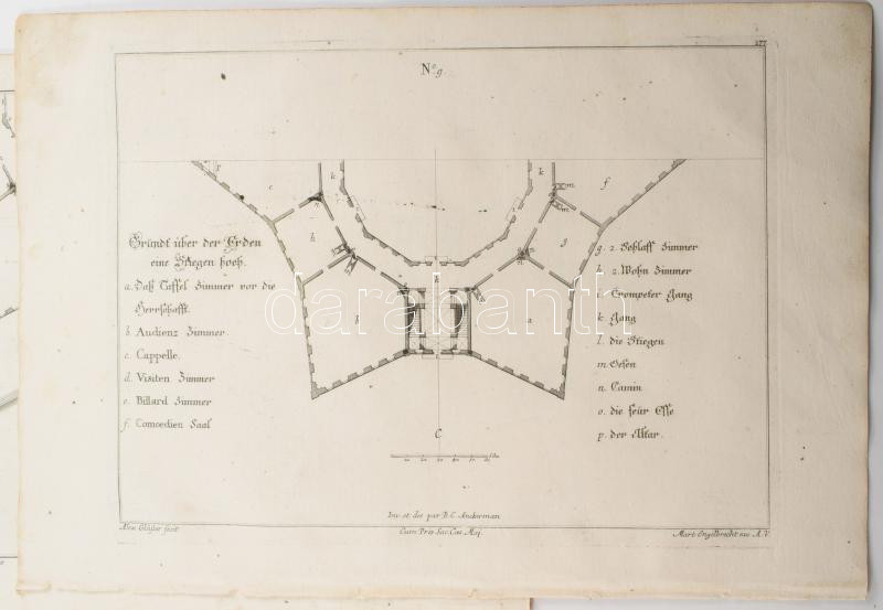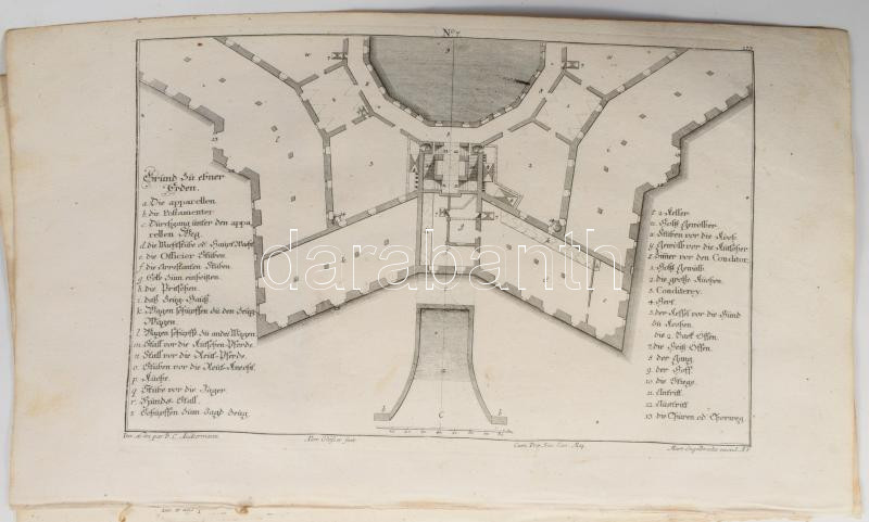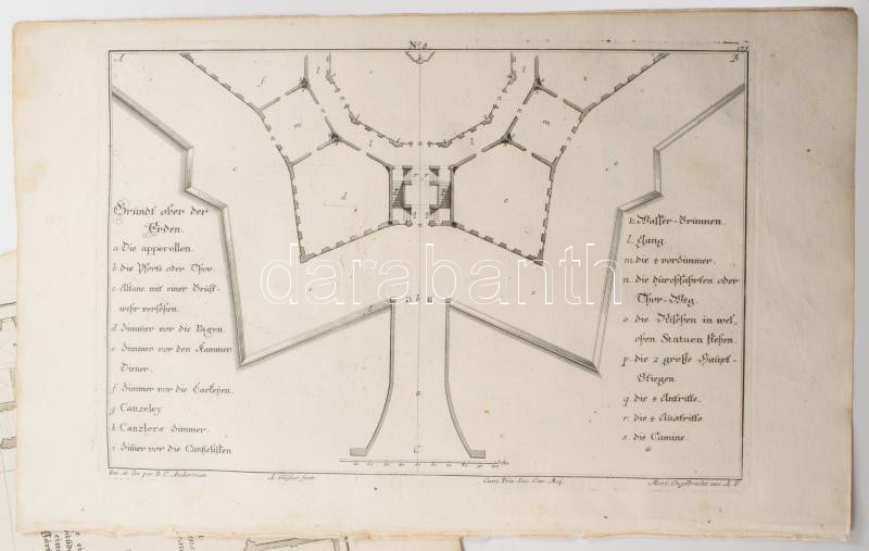 Martin Engelbrecht - Alexander Gläser, Augusta Vindel: Erődítmények, bástyák Vegyes építészeti metszetek. ca 1730 10 db Rézmetszet. / Architectural plans of different military buildings. Engravings 10 pcs 39x24 cm