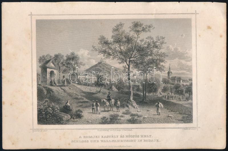 cca 1840 Ludwig Rohbock (1820-1883) A bodajki kastély és búcsús hely, acélmetszet, foltos, 14×19 cm