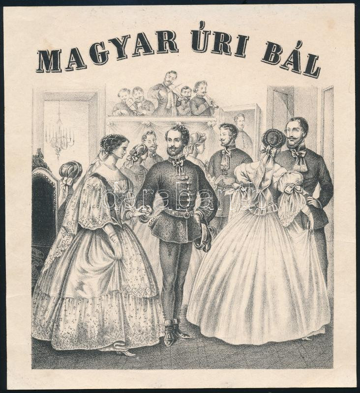 cca 1845 Magyar úri bál, litográfia, szép állapotban, 20×18 cm