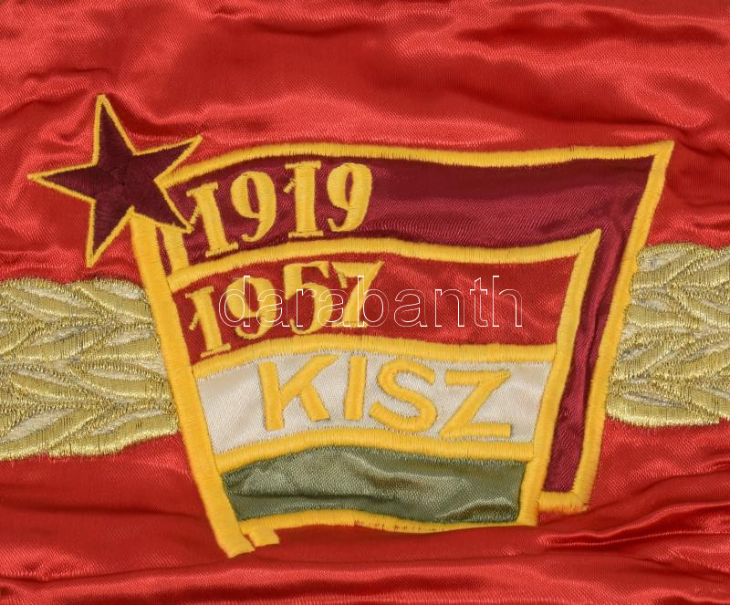 1957 Szocreál műselyem brigádzászló 35x48 cm