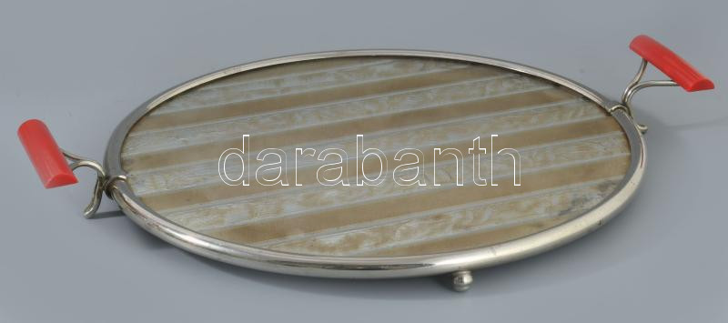 Art deco kínálótálca, kopással, d: 28 cm