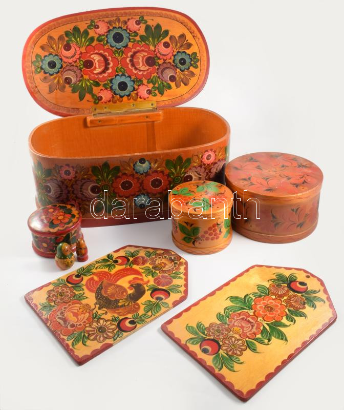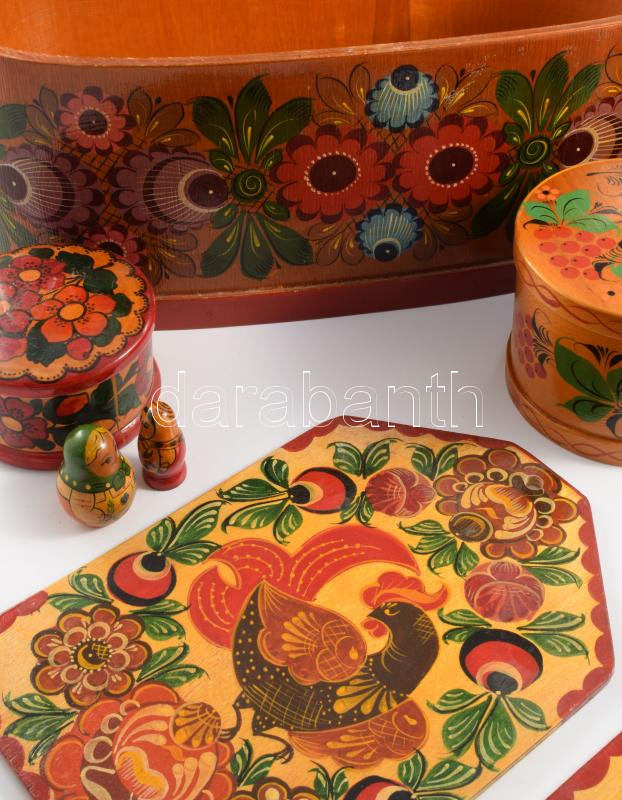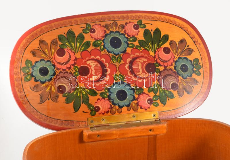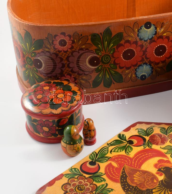 Festett népi mintás tárgy tétel, 24x42 cm alatt