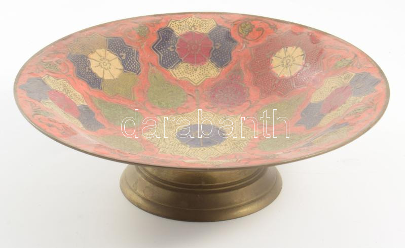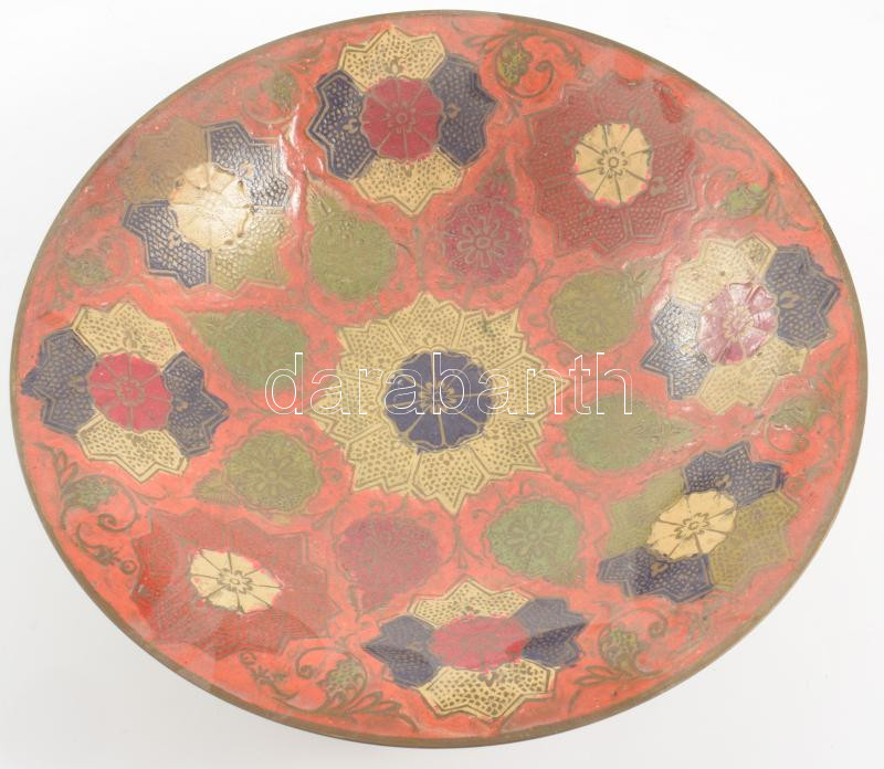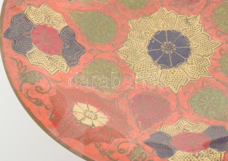 Zománcozott mintás réz kínáló, d: 18,5 cm