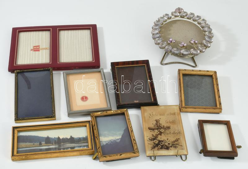 10 darab kisméretű képkeret, közte antik darabbal.