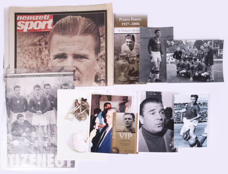 Puskás Ferenc (1927-2006) labdarúgóról szóló újságok, fotók (modern előhívások), szórólapok gyűjteménye