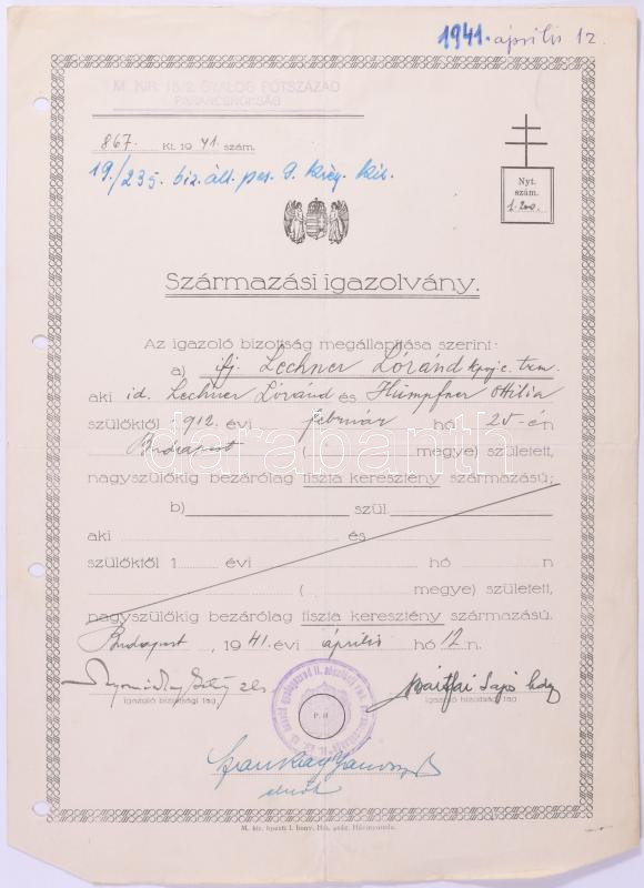 ca 1880-1980 ifj dr Kismarty-Lechner Loránd Kismarty-Lechner Jenő unokaöccse, Lechner Ödön leszármazottjának és családjának okmány hagyatéka. A család történetével kapcsolatos okmányok, feljegyzések, kis részt a XIX. századból . nagyrészt a XX. sz második feléről. A családtagok életrajzai, személyes okmányok, közöttük a rokon Hümpfner családdal kapcsolatos iratok. Lechner Lóránd mérnöki témájú cikkei, kéziratai, újságkivágásai. Nagy doboznyi.