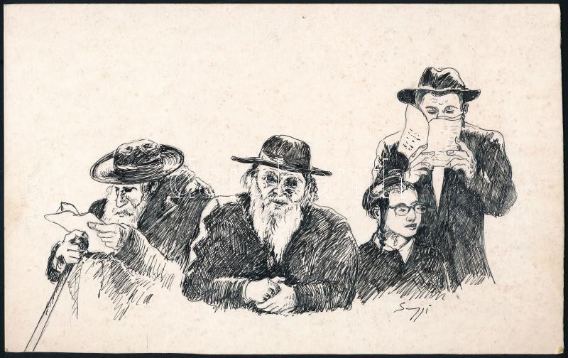 Jeshiva, Rabbik. Tusrajz, papír, jelzett, kartonon 18x26 cm