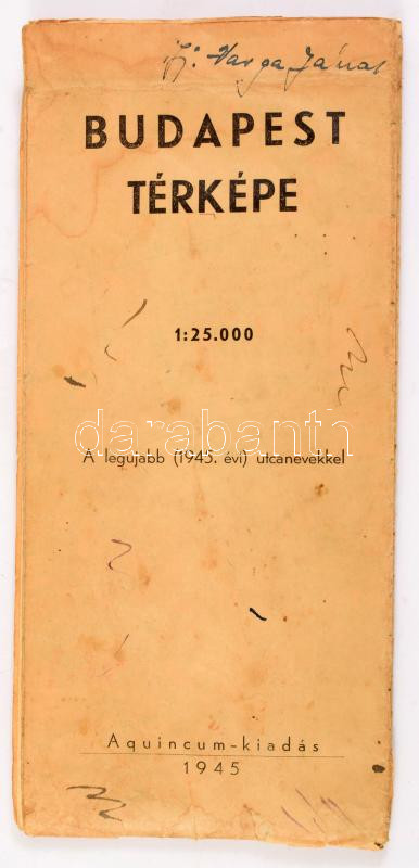 1945 Budapest térképe. A legújabb (1945. évi) utcanevekkel. 1 : 25.000, Aquincum-kiadás, kissé viseltes állapotban, foltokkal, sérülésekkel, 75,5x90 cm