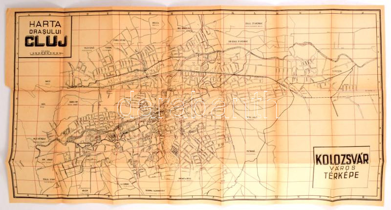 cca 1930 Kolozsvár város térképe, hajtott, kis lapszéli szakadással, 37x70 cm