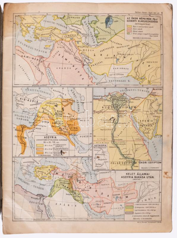 cca 1933 Barthos - Kurucz: Egyetemes történelmi atlasz. Bp., é.n., M. Kir. Honvéd Térképészeti Intézet, 40 p. Kiadói tűzött papírkötés, viseltes borítóval.