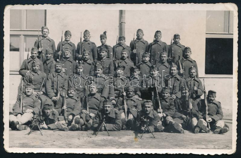 1944 Magyar katonai lövészegység Kolozsváron (Erdély), hátoldalon pecsételt fotó, 9×14 cm
