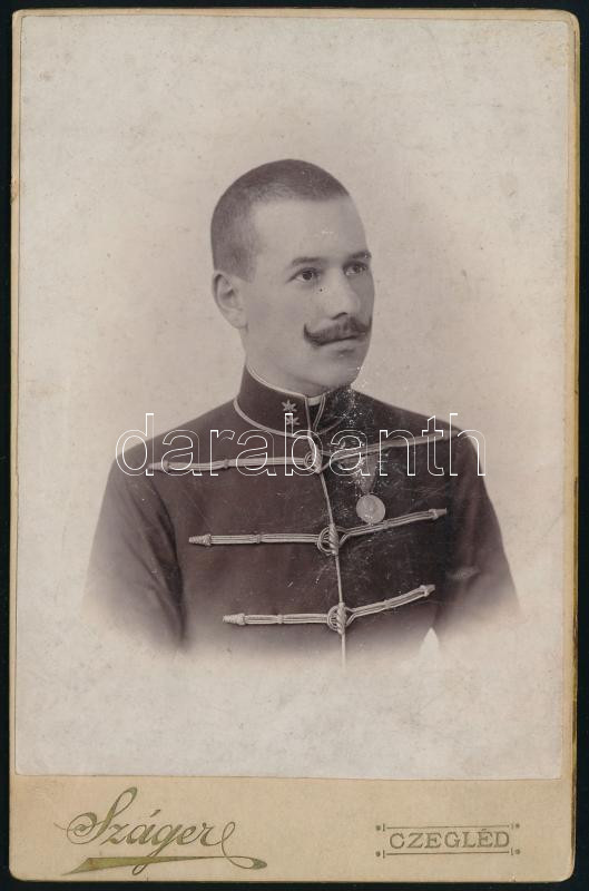 ca 1880 Katona portré, keményhátú kabinetfotó Száger M. ceglédi műterméből, 11x17 cm