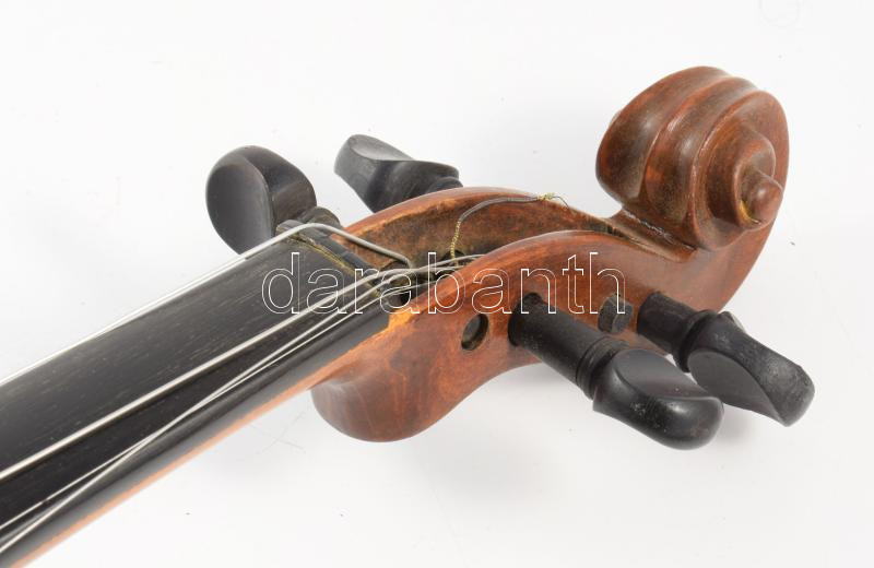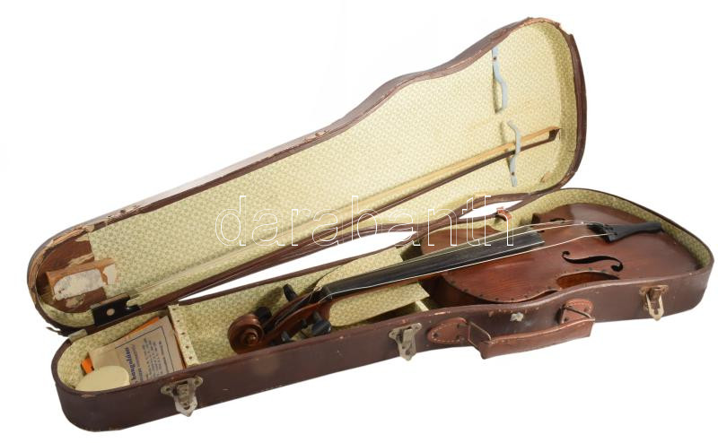 Antik hegedű, vonóval, tokkal, belül "Joseph Guarnerius Cremonae anno 1719 I.H.S" felirattal, h: 58 cm /// Állapotának felmérése személyes megtekintést igényel