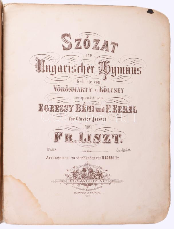 Ca 1900 Szózat kotta, Liszt F. ragasztott gerinccel.