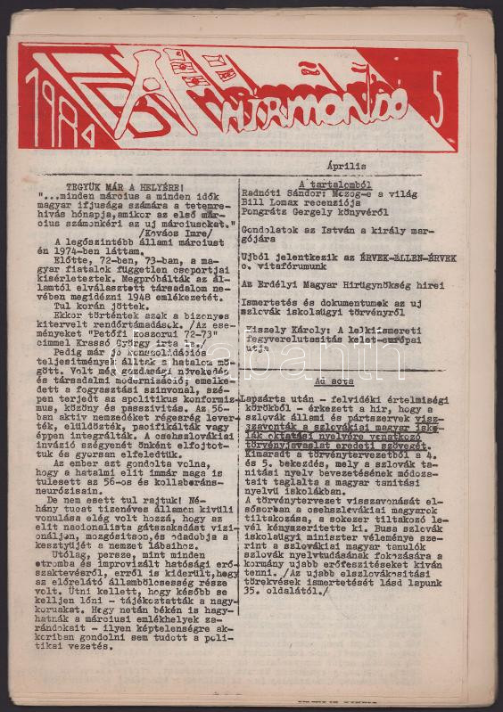 1984 AB Hírmondó c. szamizdat kiadvány 5 száma, 1984 április 52 p.