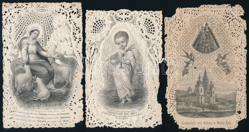 ca 1865 3 db csipke litho szentkép sérüléssel
