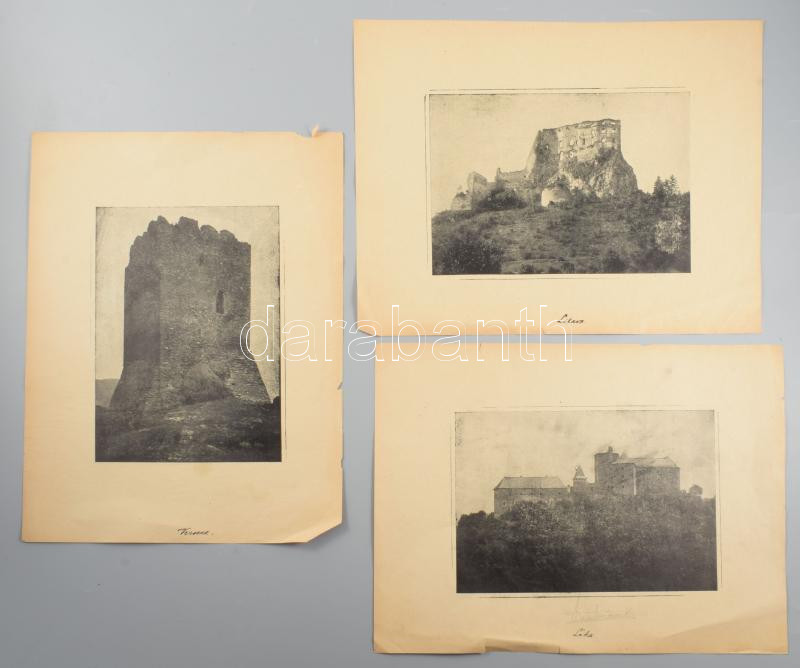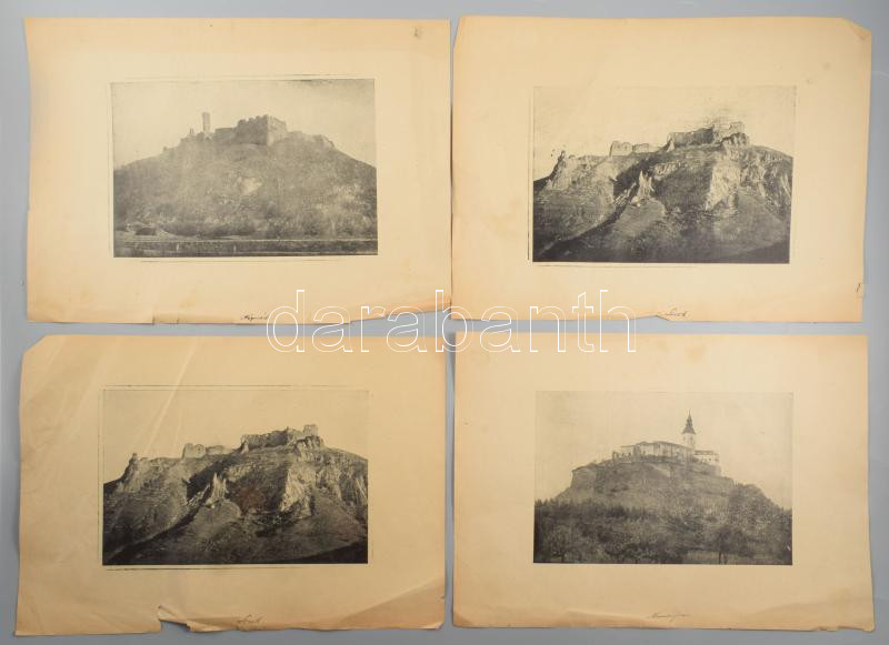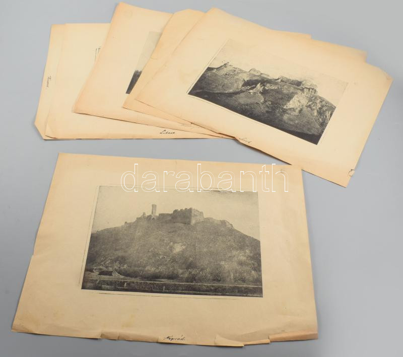 cca 1900 7 db magyar várakat ábrázoló fénynyomat, változó állapotban, lapszéli sérülésekkel, 24x31,5 cm