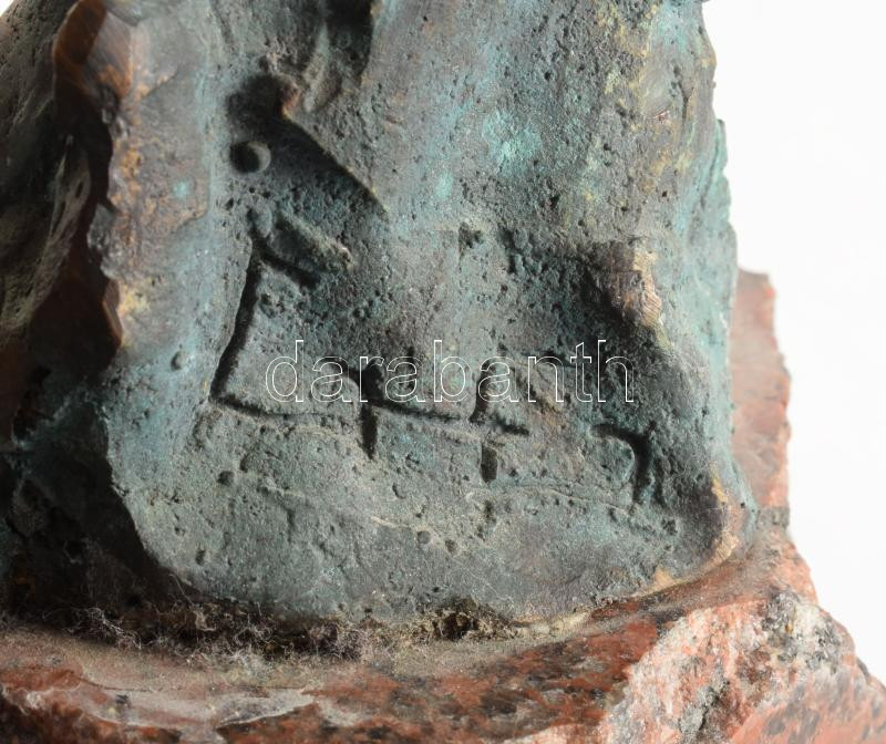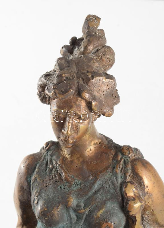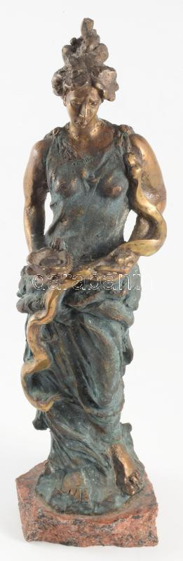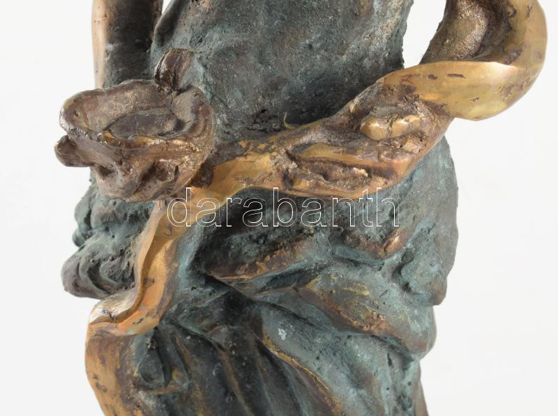 Gáspár Géza (1965): Hügénia az egészség istennője. Patinázott bronz, jelzett, márvány talapzaton. 38 cm