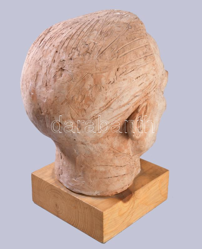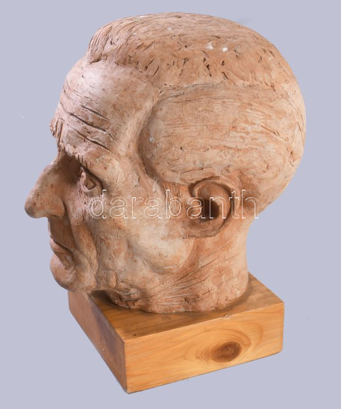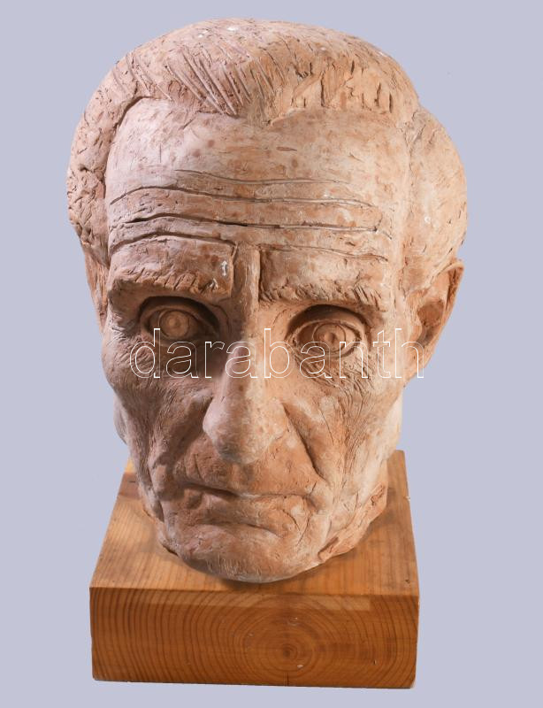 Jelzés nélkül: Férfi fej Terrakotta, fa alapon, 26 cm