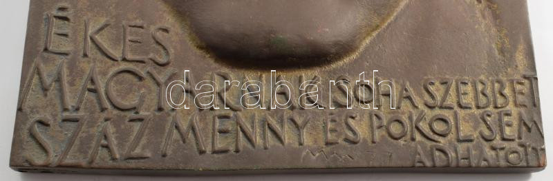 Melocco Miklós (1935 -): Ady Endre plakett (idézettel Ékes magyarnak soha szebbet, száz menny és pokol sem adhatott), 1976. Bronz. Jelzett, 20x28 cm
