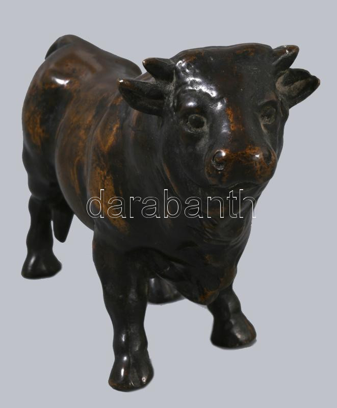 Patinázott bronz bika szobor, 16x10 cm