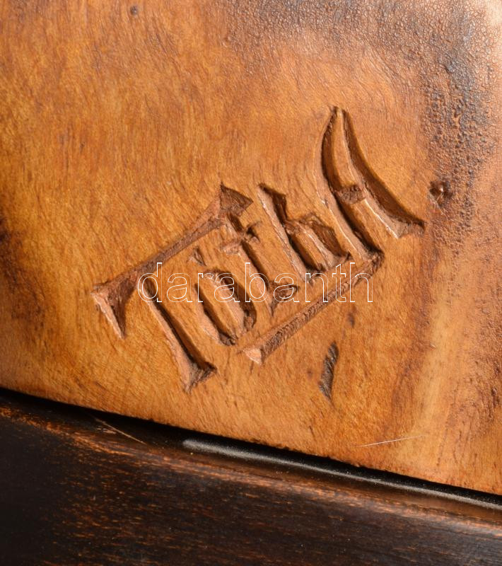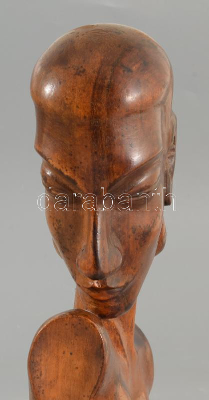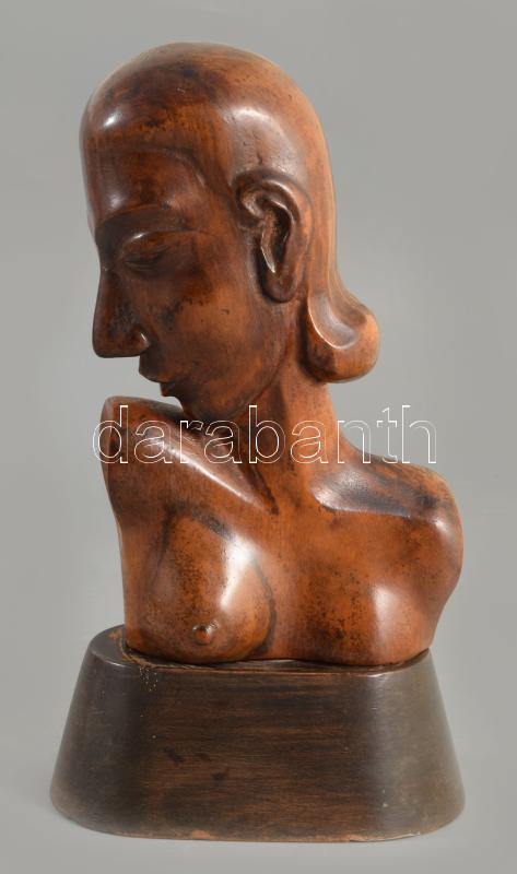 Tóth Alexandru [Sándor] (1919-1993) Nagybányai művész. Art deco félakt női szobor 1938. Lakkozott fa. Jelzett. 26 cm