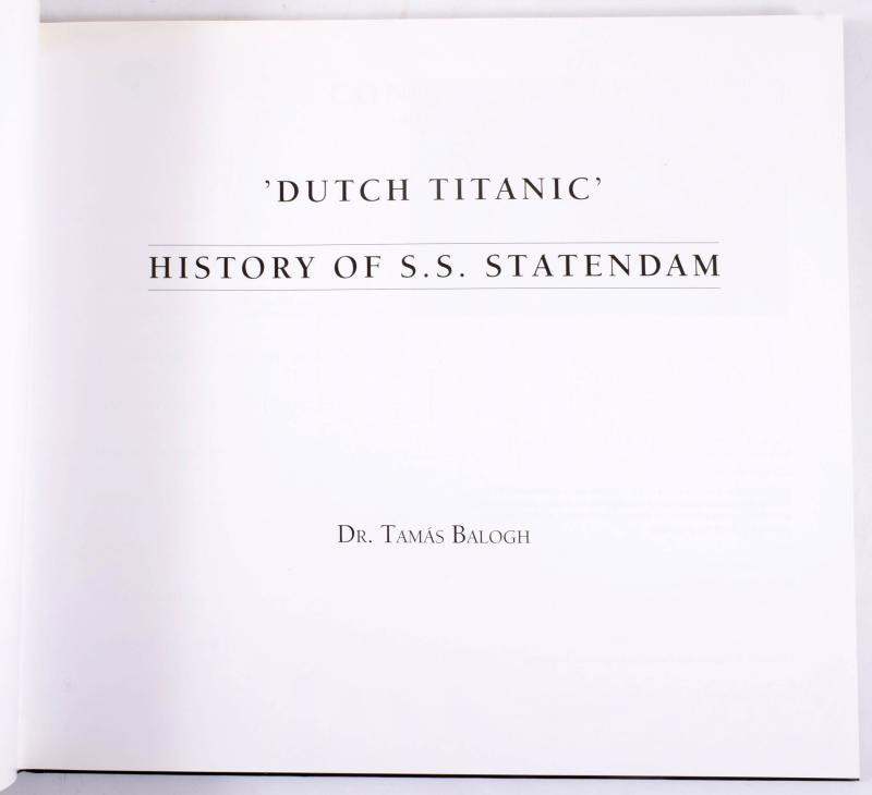 Balogh, Tamás: 'Dutch Titanic'. History of S. S. Statendam. DEDIKÁLT! hn., 2018, Schöck ArtPrint Kft. Angol nyelven. Gazdag képanyaggal illusztrált. Kiadói kartonált papírkötés.