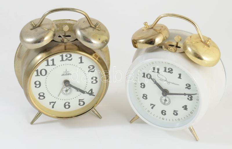 2 darab fém ébresztőóra, jó állapotban, m: 16 cm alatt