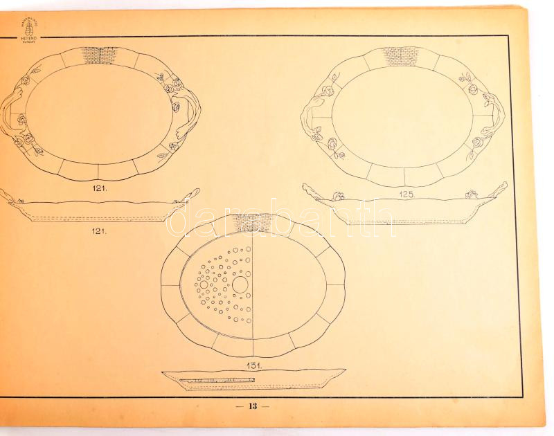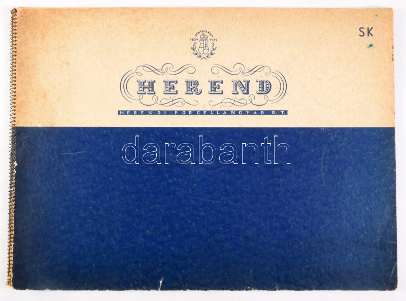 1939 Herendi Porcellángyár R.T. - A "fonott" modell konturrajzai. A Herendi Porcelángyár centenáriumi (1839-1939) katalógusa, egészoldalas illusztrációkkal, 38 p. Kiadói spirálfűzéses papírkötés, sérült, a fűzéstől különvált hátsó borítóval.