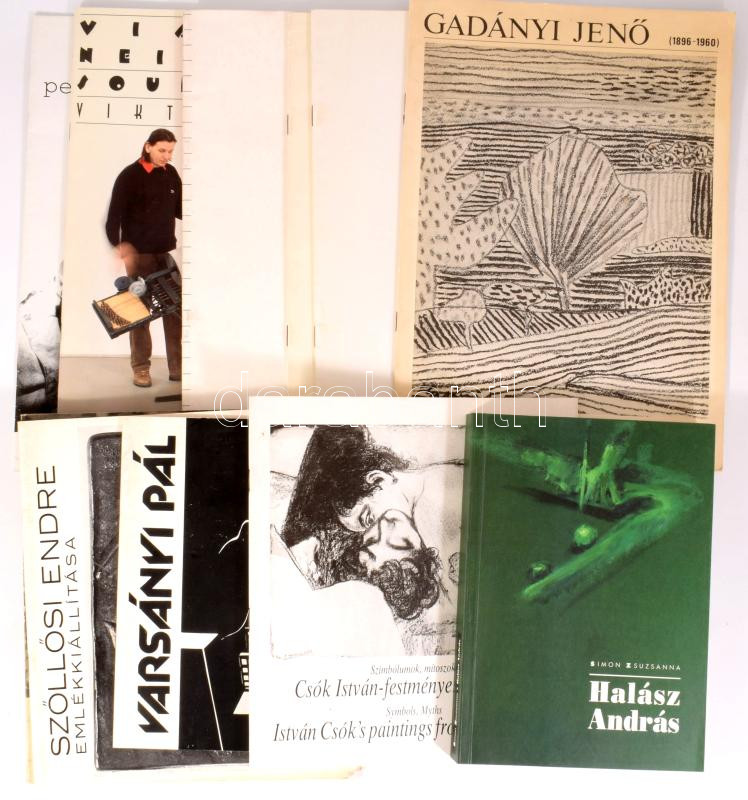 1967-2005 Vegyes művészeti katalógus tétel, 11 db. Közte Gadányi József, Rácmolnár, Sugár Gyula, Viktor Lois, Szenes Zsuzsa, Kis magyar performance történet, Megyeri Barna, Béna Géza, Szőllősi Endre, Csók István, Varsányi Pál. + Simon Zsuzsanna: Halász András. Bp., 1997, Műcsarnok. Kiadói papírkötés.