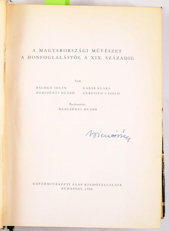A magyarországi művészet története I: A magyarországi művészet a honfoglalástól a XIX. századig. Szerk.: Dercsényi Dezső. Dienes István (1929-1995) régész, muzeológus névbejegyzésével. Bp., 1956, Képzőművészeti Alap. Gazdag képanyaggal illusztrált. Kiadói egészvászon-kötés, sérült kiadói papír védőborítóban.