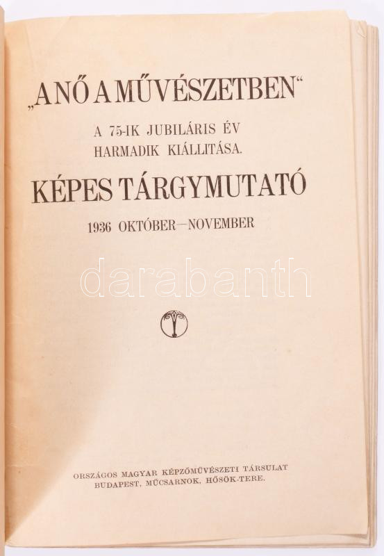 "A nÅ‘ a művészetben". A 75-ik jubiláris év harmadik kiállÃtása. Képes tárgymutató. 1936. október-november. Bp., Országos Magyar KépzÅ‘művészeti Társulat. Kiadói papÃrkötés, kopottas állapotban.