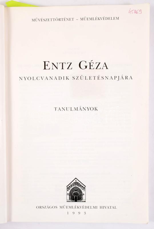 Entz Géza nyolcvanadik születésnapjára. Tanulmányok. Szerk.: Valter Ilona. Művészettörténet - Műemlékvédelem II. Bp., 1993, Országos Műemlékvédelmi Hivatal, 211 p. Fekete-fehér illusztrációkkal. Kiadói papírkötés, volt könyvtári példány.