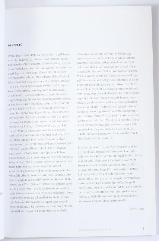 Fényi Tibor: Róth Miksa üvegfestményei a historizmustól a szecesszióig. Bp., 2005, Róth Miksa Emlékház. Kiadói papírkötés, jó állapotban.